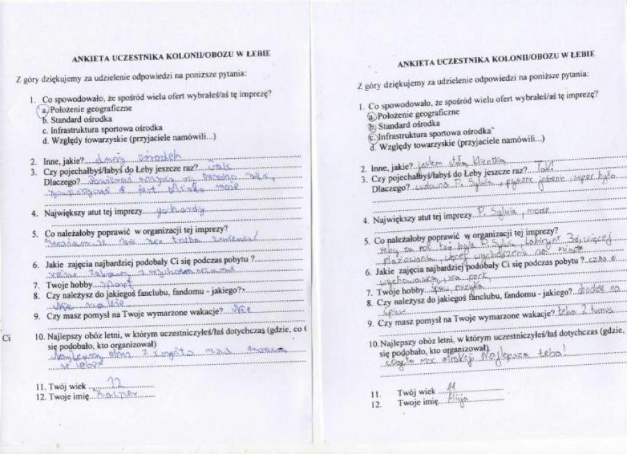 Opinie zestawione na podstawie ankiet wypełnionych przez uczestników po pobycie.